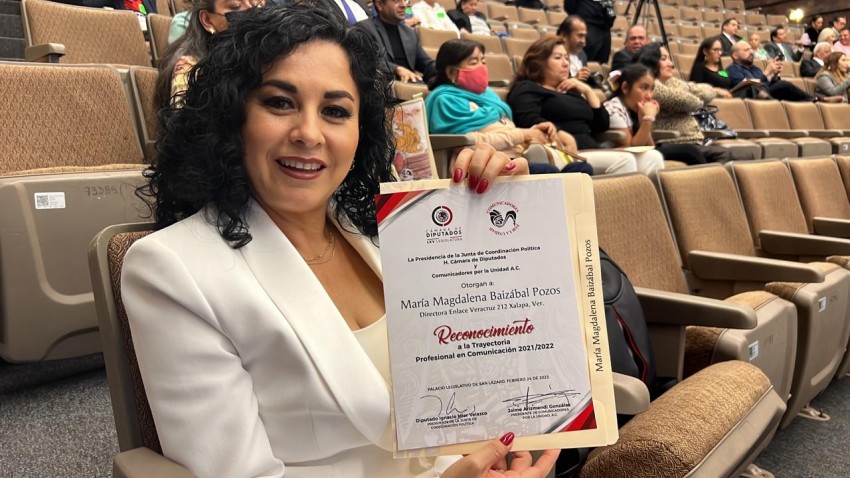 La directora de EnlaceVeracruz212, María Magdalena Baizabal Pozos, recibió un reconocimiento a la trayectoria profesional en comunicación, por parte de la asociación civil “Comunicadores por la Unidad”, evento realizado en la Cámara de Diputados del Congreso de la Unión.