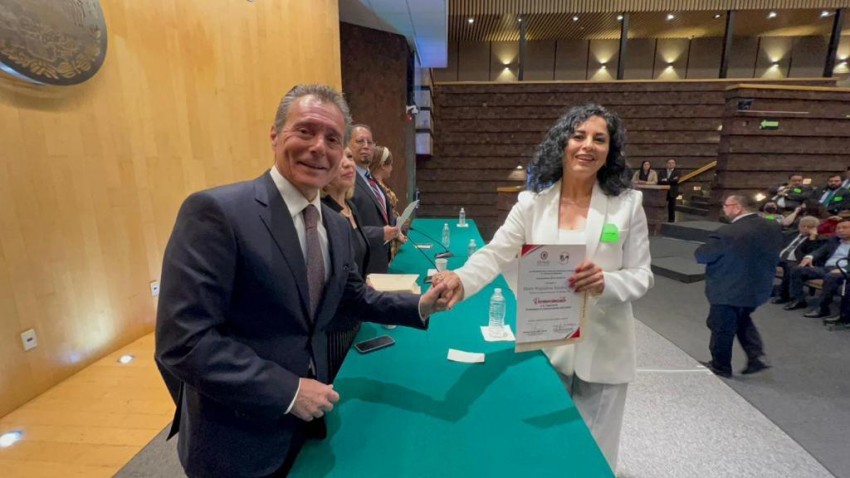 La señora Baizabal Pozos recibió dicho reconocimiento de manos del prestigiado periodista y corresponsal de guerra, Alberto Peláez.