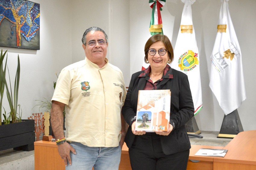 La presidenta de la Mesa Directiva de la LXVI Legislatura del estado de Veracruz, diputada Margarita Corro Mendoza, recibió del presidente municipal de Nautla, Miguel Verjel Vázquez, la actualización del Plan Municipal de Desarrollo de su administración, que comprende el periodo 2022-2025, cumpliendo así lo dispuesto en el Artículo 44 de la Ley de Planeación de la entidad.