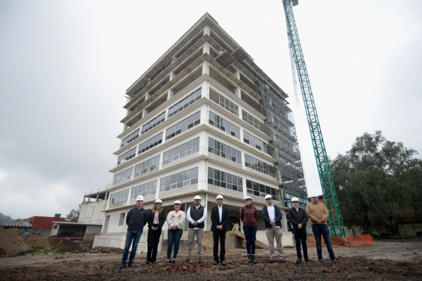 El sistema estructural de la Torre es a base de concreto armado, tendrá nueve plantas y sótano para equipos contra incendios y cisterna; en la supervisión participaron el secretario de Infraestructura y Obras Públicas, Elio Hernández Gutiérrez, y el residente de obra, Hugo Eduardo Lechuga Gómez.