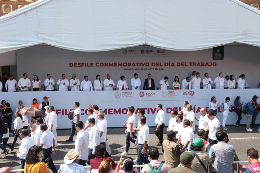 En el marco del Día Internacional del Trabajo, el gobernador Cuitláhuac García Jiménez y la secretaría del Trabajo, Previsión Social y Productividad, Dorheny Cayetano García presidieron el desfile conmemorativo en el que participaron 81 mil 800 personas, distribuidos en 12 contingentes de diferentes sindicatos, federaciones y centrales obreras.