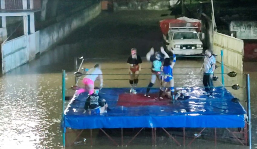 A través de redes sociales se ha hecho viral un evento realizado en el municipio de Martínez De La Torre, en el cual las fuertes lluvias provocaron que la sede de la función se inundará, pero los promotores lejos de cancelar el evento y devolver el dinero decidieron seguir con el espectáculo y subir a los espectadores a una zona en la que no hubiera agua mientras los luchadores se enfrentaban en un ring rodeado por agua creando sin querer una nueva modalidad de combate.