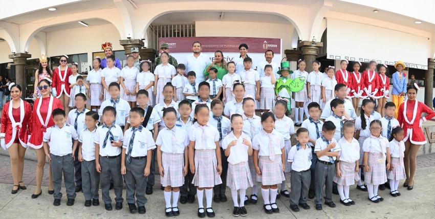 El Gobierno de Tuxpan llevó a cabo el Lunes Cívico en el marco de la celebración por el Día del Estudiante, en el que participaron alumnas, alumnos y personal docente del Colegio Particular Gandhi.