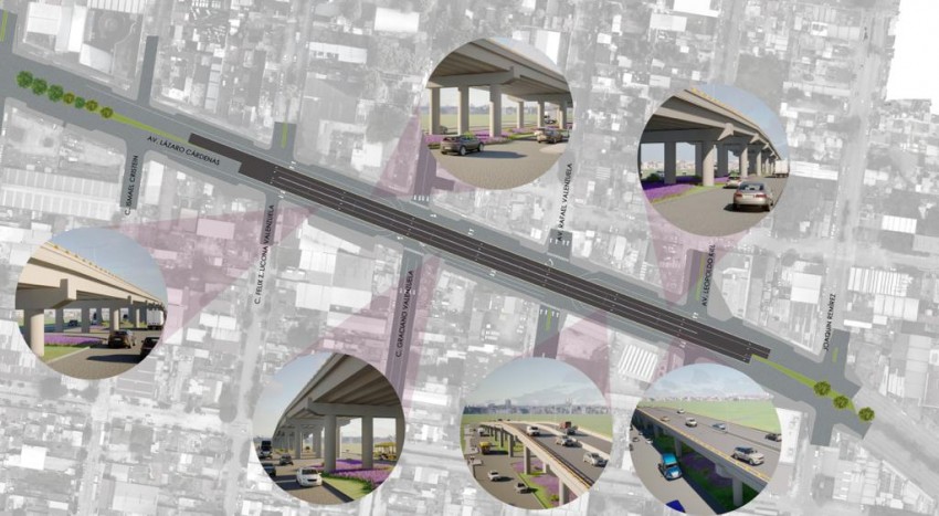 Con una inversión de 129 millones de pesos, el puente elevado tendrá 431 metros de longitud y 10 claros, cuatro carriles en la parte superior y dos para cada lado a nivel de piso, con dos entronques o retornos, previendo terminarlo en un año.