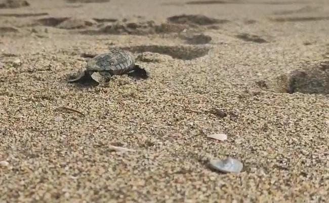 Decenas de huevos de tortuga de la especie lora eclosionaron este martes en la playa de Coatzacoalcos.