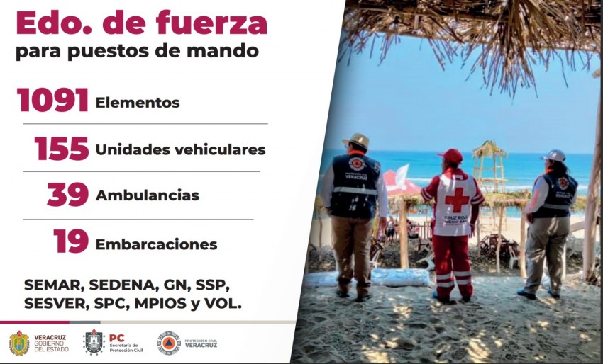 El operativo consta igualmente de 155 vehículos, entre éstos 39 ambulancias y 19 embarcaciones, con apoyo de las secretarías de Marina, Defensa Nacional, Seguridad Pública y Salud, así como la Guardia Nacional y ayuntamientos.