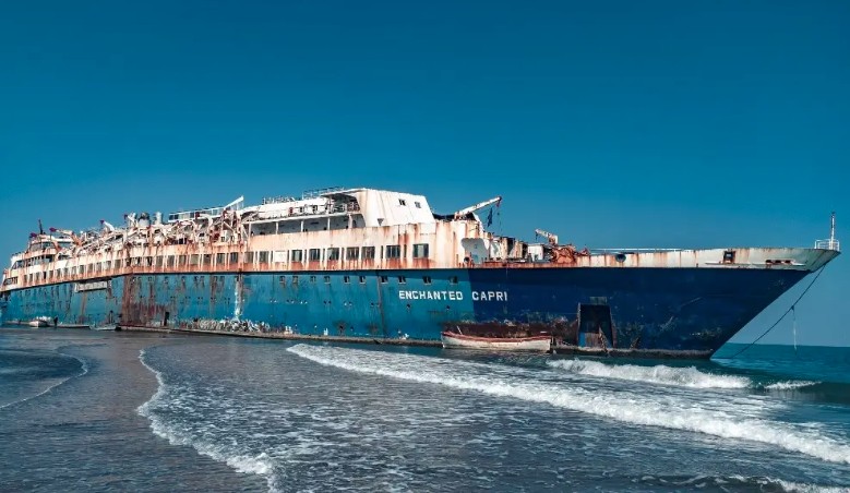 Actualmente el 'Enchanted Capri' está siendo desmantelado por una empresa, ya que el casco está a punto de partirse en dos y podría ser un peligro.