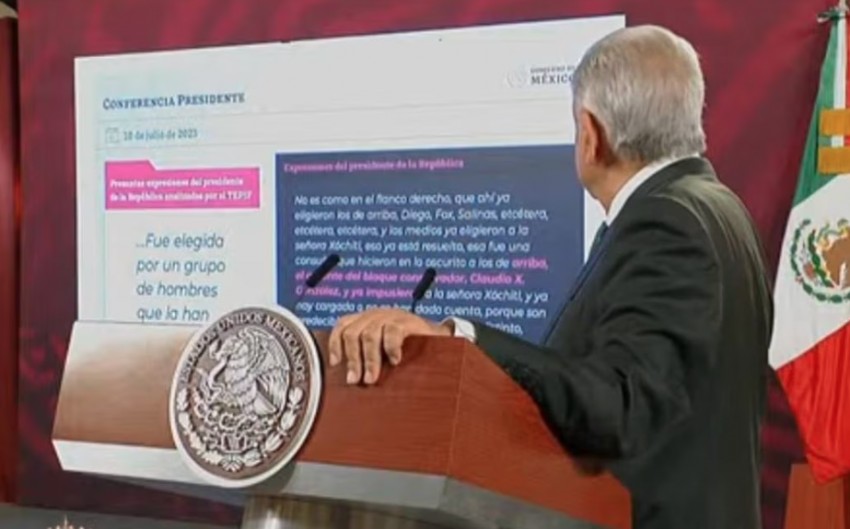 López Obrador mostró que la sanción fue por haber dicho que Xóchitl Gálvez “fue elegida por un grupo de hombres que la han impuesto”.