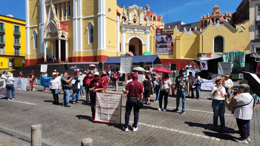 Integrantes de la Asociación de Jubilados y Pensionados del Instituto de Seguridad y Servicios Sociales para los Trabajadores del Estado de Veracruz (AJUPIV), marcharon por las principales calles de la ciudad de Xalapa hasta arribar a la Plaza Sebastián Lerdo de Tejada, en dónde realizaron un plantón- manifestación dónde exigieron por enésima ocasión el pago de los seguros institucionales que les adeudan desde hace aproximadamente diez años.