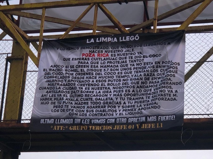 En medio de un aumento de la violencia en Poza Rica, Veracruz, nuevos restos humanos y una lona con mensaje del crimen organizado fueron encontrados en la carretera, a pesar del despliegue de más de 600 elementos del Ejército y Guardia Nacional.