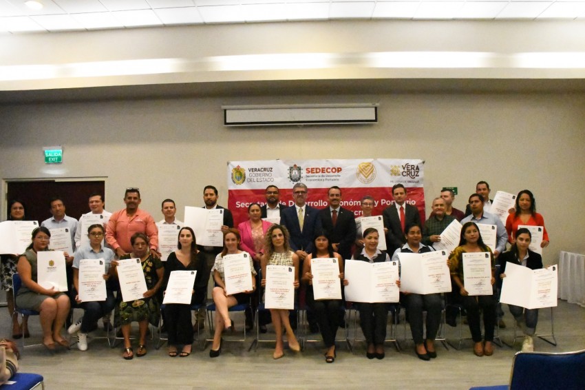 La Secretaría de Desarrollo Económico y Portuario (SEDECOP) entregó el Distintivo Veracruz a la Calidad a 34 empresas de diversos sectores como exportadoras de cítricos, vainilla, café y especias, de logística, despachos aduanales, certificadoras y proveeduría, con un apoyo económico individual de 25 mil pesos.