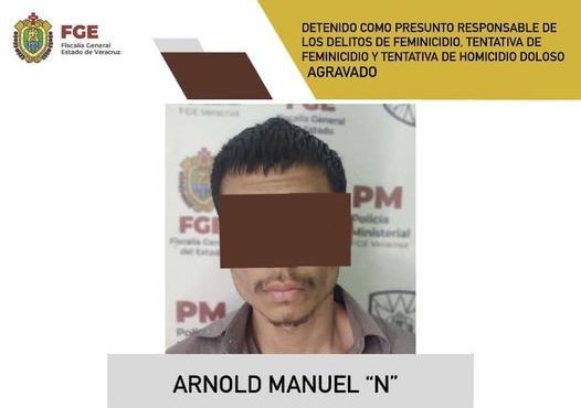 Elementos de la Policía Ministerial cumplimentaron orden de aprehensión en contra de Arnold Manuel “N” como presunto responsable de los delitos de feminicidio en agravio de su madre Cecilia “N”, feminicidio en grado de tentativa en agravio de su hija de identidad resguardada y homicidio doloso agravado en grado de tentativa en agravio de su padre, Raúl “N”.