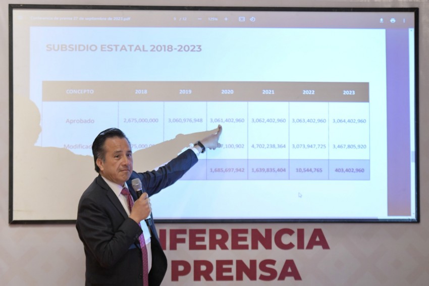 Luego de enfatizar el pago de 3 mil 325 millones 533 mil 346 pesos al Servicio de Administración Tributaria, mostró las cantidades extraordinarias de 2020, 2021 y 2022, que consistieron en mil 685 millones 697 mil 942, mil 639 millones 835 mil 404 y 10 millones 544 mil 765 pesos, respectivamente.