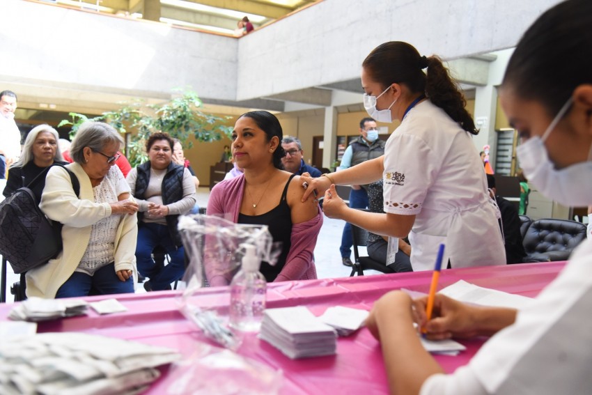Tras asegurar que la prevención es fundamental para disminuir la propagación de enfermedades respiratorias, la doctora Claudia del Rosario García informó que personal de la Secretaría de Salud (SS) aplicó 150 dosis de la vacuna contra la influenza a igual número de trabajadoras y trabajadores del Congreso y sus familias.