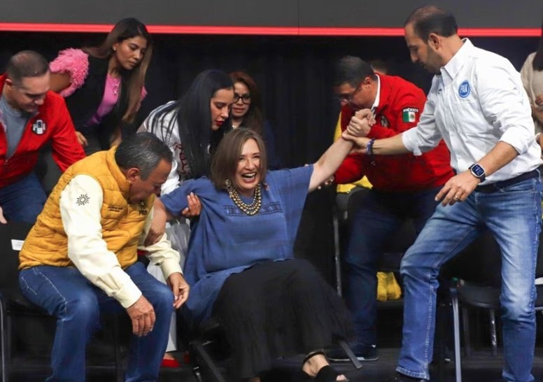 Lo anterior generó un grito de Xóchitl Gálvez y de inmediato quienes se encontraban cerca de ella acudieron a levantarla, entre ellos Sandra Cuevas, Jesús Zambrano y Marko Cortés.
