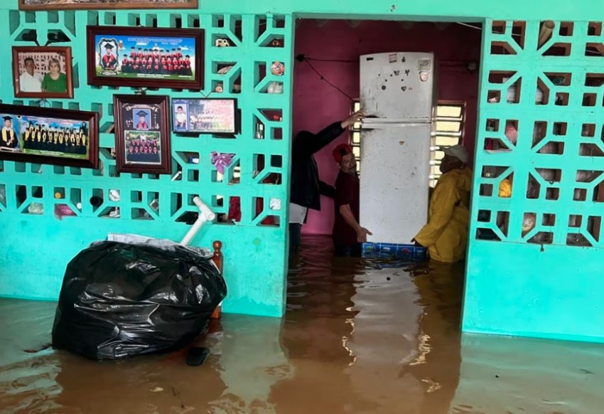 Un centenar de viviendas en el municipio de Agua Dulce amanecieron inundadas después de que esta madrugada se desbordara el río del mismo nombre, y que vio incrementado sus niveles tras el paso del Frente Frío número 8 por la entidad.
