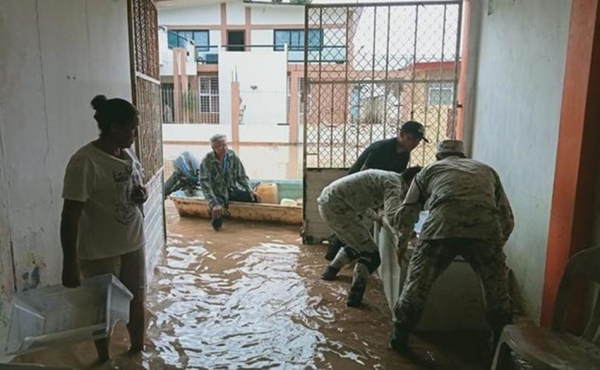 Los guardias nacionales, apoyados con lanchas y vehículos oficiales, acuden a puntos donde se han registrado inundaciones en los municipios de Agua Dulce, Las Choapas y Coatzacoalcos, para evacuar a las familias que permanecían al interior de sus viviendas, con el fin de trasladarlas a los albergues habilitados.