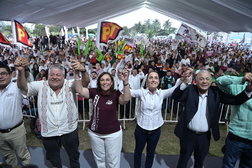 Quienes acompañan a Morena en el esfuerzo territorial, casa por casa, son los aliados Partido Verde y Partido del Trabajo.