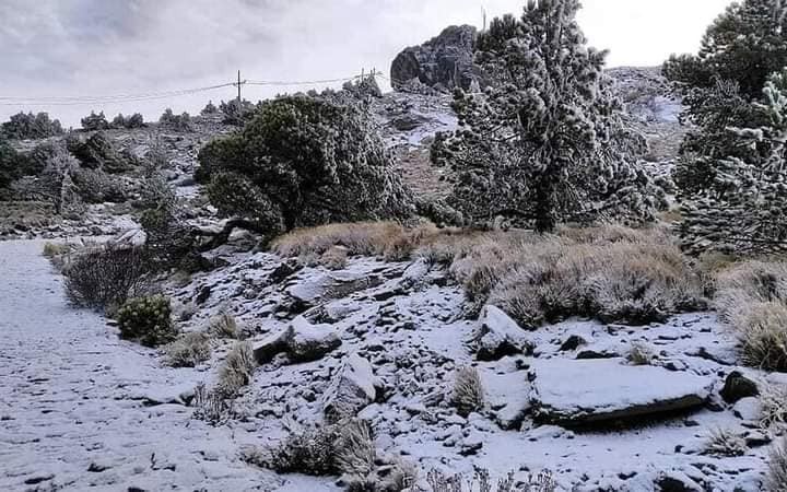 La madrugada de este jueves 23 de noviembre se registró la primera nevada de la temporada invernal en el Cofre de Perote y el Pico de Orizaba.