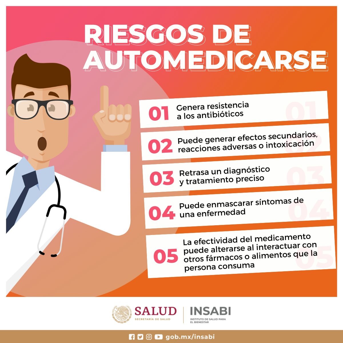 Esta práctica puede generar agravamiento de la enfermedad, efectos secundarios de los medicamentos, intoxicación, dependencia, ocultamiento de otro problema de salud más grave e incluso el desarrollo de una resistencia a los antibióticos, ocasionando un problema de salud pública a largo plazo.