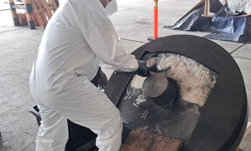 En su interior se detectó que el engrane de mayor tamaño se encontraba hueco, con un polvo blanco y un doble fondo donde se encontró también la sustancia granulada.