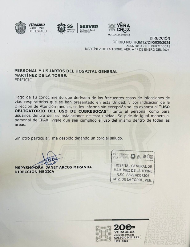 La Secretaría de Salud del Gobierno federal ha ordenado que en todos los hospitales del estado de Veracruz se use de manera obligatoria el cubrebocas, ya que los casos de covid-19 han venido aumentado.