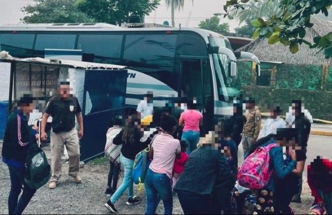 Doce autobuses de la línea Transporte Istmeños, que trasladaban a más de 400 migrantes provenientes del Istmo de Tehuantepec, Oaxaca, a Sayula de Alemán, Veracruz, fueron detenidos por autoridades de la Guardia Nacional.