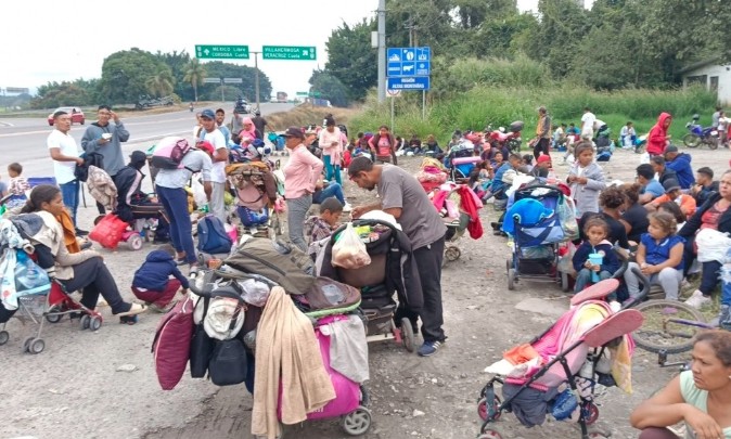 El contingente, conformado por 150 hombres, 95 mujeres, entre ellas 5 embarazadas, y 142 menores de edad, estuvo escoltado en su travesía por personal de la Policía Estatal, Guardia Nacional, así como personal del Instituto Nacional de Migración.