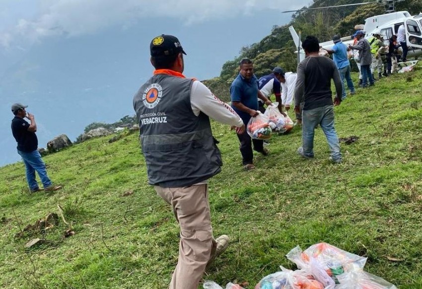 Equipos de PC Estatal en coordinación con personal del ayuntamiento y elementos de la Secretaría de Seguridad Pública (SSP), Guardia Nacional (GN) y Bomberos Voluntarios de Zongolica prepararon los puntos de despegue y aterrizaje y distribuyeron los insumos en las comunidades.