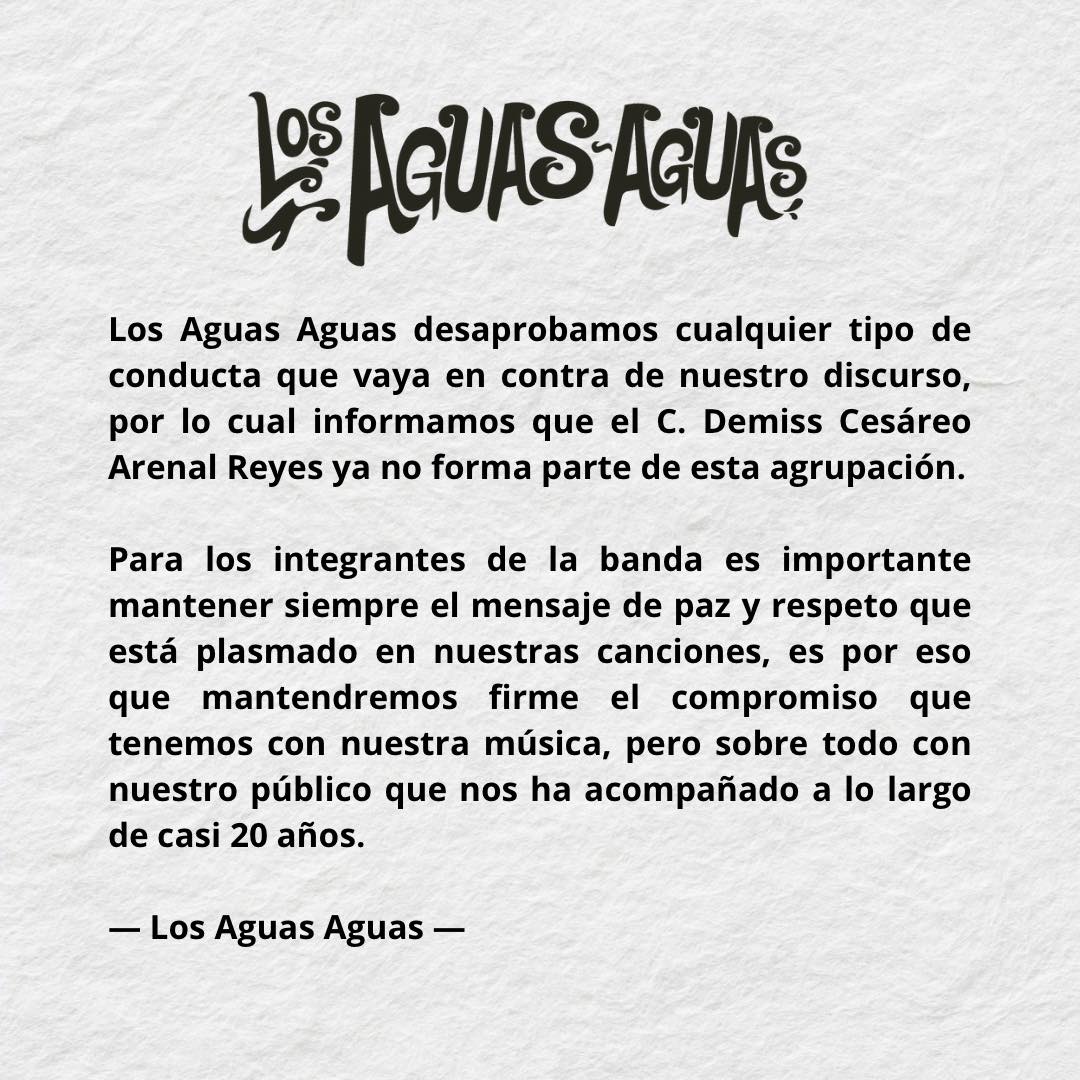 Tras las marchas que se realizaron el pasado 8 de marzo por el Día Internacional de la Mujer, "Los Aguas aguas", que es una Orquesta Fusión Originaria de Xalapa, Veracruz separó del grupo a su vocalista Demiss Cesáreo Arenal Reyes, tras ser señalado por presunto acoso.