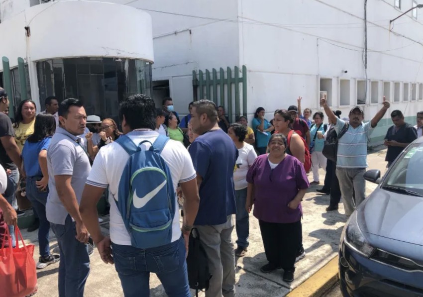 Los trabajadores se apostaron frente a las instalaciones del hospital, sin bloquear el acceso, para exigir que les paguen las quincenas atrasadas.