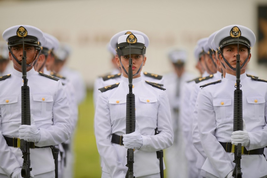 Finalizado el evento, los cadetes de la Heroica Escuela Naval Militar desfilaron frente al Comandante Supremo de las Fuerzas Armadas y los altos mandos de la Marina-Armada y Defensa Nacional.