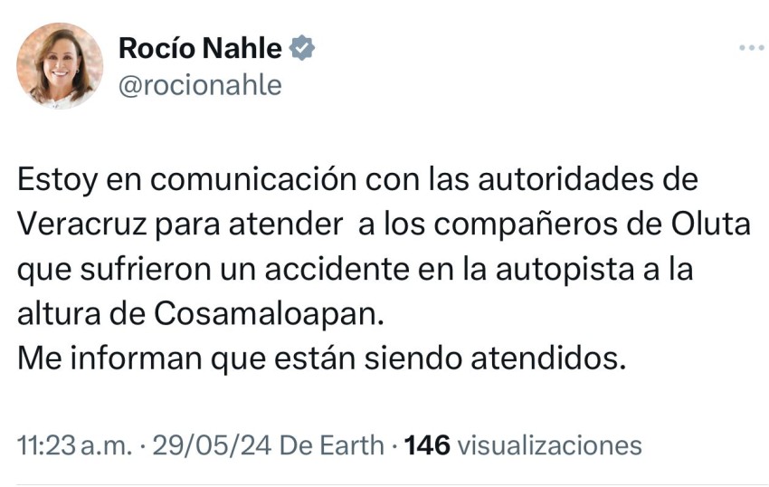 “Estoy en comunicación con las autoridades de Veracruz para atender a los compañeros de Oluta que sufrieron un accidente en la autopista a la altura de Cosamaloapan.
