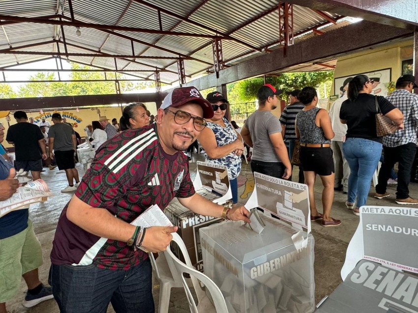 El líder de la Junta de Coordinación Política del Congreso del Estado de Veracruz, diputado Juan Javier Gómez Cazarin emitió su voto en la casilla número 1642 casilla B Distrito XIX de Hueyapan de Ocampo.