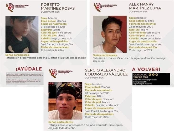 En Ciudad Càrdel, municipio de La Antigua, Veracruz, la Comisión Estatal de búsqueda reportó la desaparición de tres jóvenes desde 15 y 16 de mayo, de acuerdo a las fichas de búsqueda, difundidas por sus familiares y amistades quienes dieron a conocer que dejaron de tener comunicación con los muchachos de 19 y 20 años de edad, desde esas fechas.