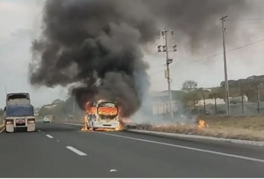 Una camioneta Nissan Urban modelo 2024 y placas de circulación 648-RN-5 de una compañía privada se incendió en la autopista Veracruz-Cardel a la altura de San Julián.