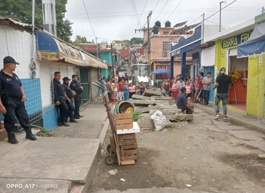 Durante la mañana de este martes los inconformes se manifestaron para impedir que trabajadores municipales retiraran escombros de la calle Manuel A. de la Cabada como parte de las obras programadas.