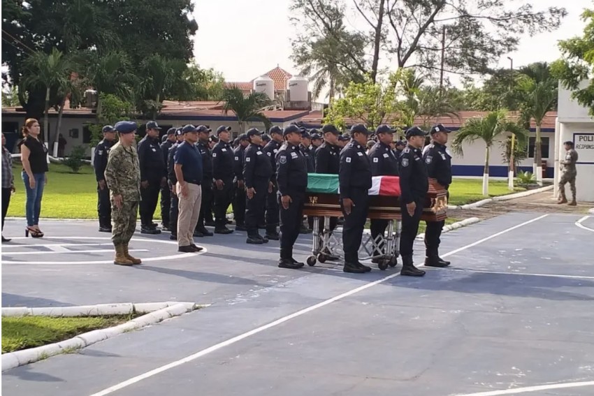 El féretro fue cubierto con la bandera de México, sus compañeros escoltaron el ataúd donde se montó guardia de honor y una ofrenda floral.
