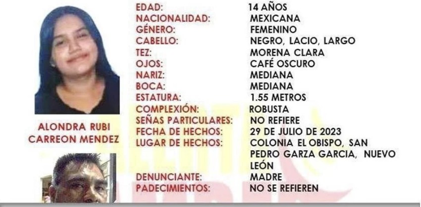 La menor de 14 años de edad había sido reportada como desaparecida el pasado 29 de julio de 2023 en la colonia El Obispo, en el municipio de San Pedro Garza García, cuando su madre perdió contacto con ella tras salir de su vivienda.