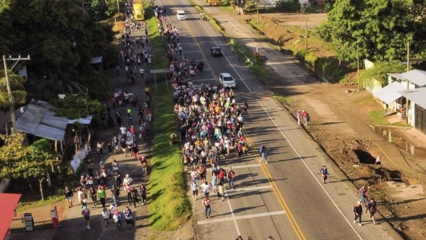 Las personas originarias principalmente de Venezuela, Honduras, El Salvador, Nicaragua y Ecuador, entre otros, llevan aproximadamente un mes caminando y entraron al estado de Veracruz por el municipio de Jesús Carranza.