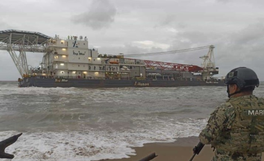 Vía área fueron rescatados 135 tripulantes de la embarcación Tog Mor que encalló cerca de la playa de Villa Allende este fin de semana en Coatzacoalcos.
