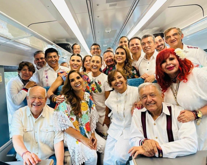 La gobernadora electa de Veracruz, Rocío Nahle García, acompañó al presidente Andrés Manuel López Obrador y a la presidenta electa, Claudia Sheinbaum Pardo, a la puesta en marcha de la ruta Cancún-Chichén Itzá-Teya del Tren Maya inaugurada hoy.