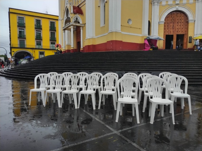 -A pesar de la lluvia registrada en la capital del Estado, rsto no impidió que integrantes de colectivos de personas desaparecidas recordaran a los 43 estudiantes desaparecidos hace diez años de la Escuela Normal Rural Isidro Burgos de Ayotzinapa, Guerrero.