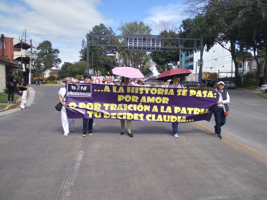 Portando carteles, lonas,pancartas y letreros en cartulinas donde exigieron respeto a las leyes y gritando consignas como: "El poder Judicial no va caer., no va a caer"., "Mexico despierta la dictadura esta en la puerta"., "Democracia si, dictdura no"., "Jueces de carrera justicia de primera".,"Poder Judicial contrapeso Ncional".,"Justicia independiente derecho de l gente".