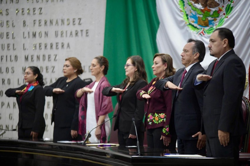 Conforme a lo establecido en el Artículo 45 de la Constitución local y en presencia de la presidenta de la República, Claudia Sheinbaum Pardo, y la vicepresidenta de la Cámara de Diputados, Dolores Padierna Luna, por primera vez una mujer emanada de la izquierda asumió la más alta responsabilidad en la entidad.