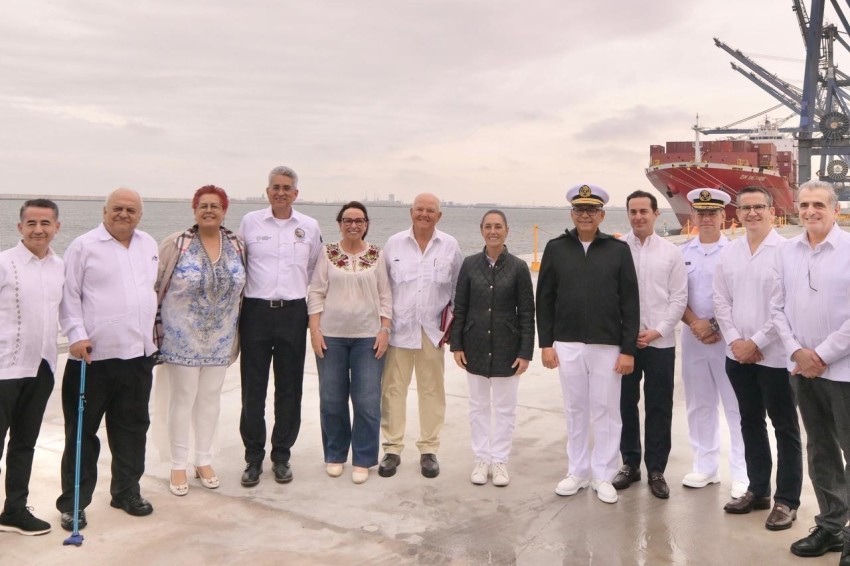 La presidenta de México, Claudia Sheinbaum Pardo, y la gobernadora de Veracruz, Rocío Nahle García, supervisaron los avances de la Terminal Semiespecializadade Contenedores y Carga, a cargo de Grupo CICE, en la Bahía Norte del puerto de Veracruz.