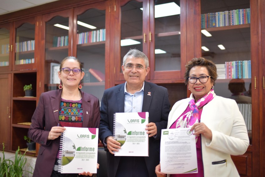 Con la presencia de la presidenta de la Mesa Directiva, diputada Tanya Carola Viveros Cházaro, y del presidente de la Junta de Coordinación Política (Jucopo), diputado Esteban Bautista Hernández, el presidente de la Comisión Permanente de Vigilancia, diputado Miguel Guillermo Pintos Guillén, recibió de la titular del Órgano de Fiscalización Superior del estado (Orfis), Delia González Cobos, el informe de seguimiento correspondiente a la situación que guardan las observaciones, recomendaciones y acciones promovidas de la fiscalización superior de las Cuentas Públicas 2017 a 2023.