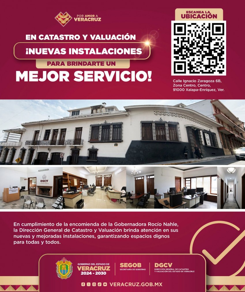 La Secretaría de Gobierno (Segob) informa a la ciudadanía que la Dirección General de Catastro y Valuación ha comenzado a brindar atención en sus nuevas y modernas oficinas, ubicadas en la calle Ignacio Zaragoza 28, en la zona centro de esta capital.