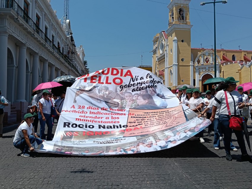 Integrantes del Sindicato Independiente de Trabajadores de la Educación en México, realizaron un plantón en la avenida Juan de la Luz Enríquez, exigen audiencia con la gobernadora Roció Nhale García, debido a que la titular de Educación Claudia Tello, no atiende diversas denuncias de acoso Laboral y sexual.
