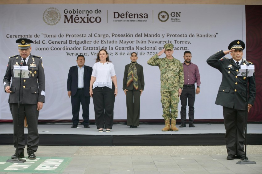 La gobernadora Rocío Nahle García reiteró la colaboración con las fuerzas federales durante la Toma de Protesta, Posesión del Mando y Jura de Bandera del coordinador estatal de la Guardia Nacional, Iván Navarrete Torres, acto encabezado por el coordinador territorial de la Guardia Nacional en la Región Golfo, Ignacio Murillo Rodríguez.